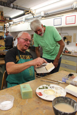 Voller Elan starteten die Krippenbaukurse. Leider konnte im letzten Jahr keine Ausstellung abgehalten werden, so ist auch der Andrang nicht sehr groß. Aber: Qualität vor Quantität.