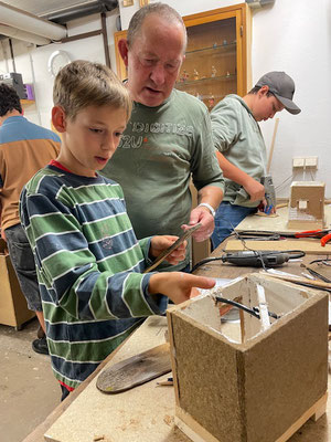 Voller Elan sind die Kurse gestartet. Montags, Mittwochs, Donnerstags und Freitags werden Krippen unter fachkundiger Anleitung der Helfer gefertigt. Besonders freut uns, dass wieder 13 Kinder so eine tolle Einstimmung auf das Weihnachtsfest erleben.